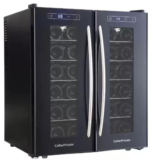 Винный холодильник CellarPrivate CP024-2T имеет две температурные зоны, в которых одновременно можно хранить разные сорта алкоголя и выставлять разные сочетания настроек. Он устанавливается отдельно, что удобно, если у вас есть специальное помещение — кладовая, погреб и т.д. Благодаря компактным размерам данная модель — отличный выбор для офиса, гостиничного номера. Количество бутылок, которое можно разместить с учетом полной комплектации и из расчета объема бутылки 0,75 л, — 24 шт.