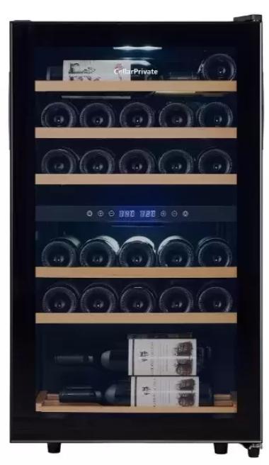 Винный холодильник CellarPrivate CP029-2T имеет две температурные зоны, в которых одновременно можно хранить разные сорта алкоголя и выставлять разные сочетания настроек. Он устанавливается отдельно, что удобно, если у вас есть специальное помещение — кладовая, погреб и т.д. Благодаря компактным размерам данная модель — отличный выбор для офиса, гостиничного номера. Количество бутылок, которое можно разместить с учетом полной комплектации и из расчета объема бутылки 0,75 л, — 28 шт.