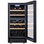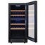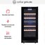 Стеклянная дверь — дополнительный изящный штрих к общему дизайну модели. Специальное покрытие защищает вино от влияния ультрафиолетовых лучей, которые проникают, если шкаф находится в солнечной комнате. Цвет корпуса — черный. Дверь можно перевесить на другую сторону, поэтому вариантов размещения его в доме становится больше.