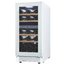 Стеклянная дверь — дополнительный изящный штрих к общему дизайну модели. Специальное покрытие защищает вино от влияния ультрафиолетовых лучей, которые проникают, если шкаф находится в солнечной комнате. Цвет корпуса — белый. Дверь можно перевесить на другую сторону, поэтому вариантов размещения его в доме становится больше.
