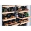 Производители предлагают винные шкафы, оснащенные одной, двумя, тремя и четырьмя камерами, которые могут располагаться как друг под другом, так бок и бок. Самые популярные — однокамерные модели, ассортимент которых особенно широк, но втором месте — двухкамерные. Над заметить, что количество камер не зависит напрямую от габаритов изделия: например, однокамерные модели увеличенных габаритов — далеко не редкость. Их высота может варьироваться в пределах от 14 см до 219 см, а ширина — от 13 см до 150 см.