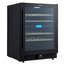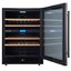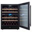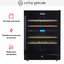 Стеклянная дверь — дополнительный изящный штрих к общему дизайну модели. Специальное покрытие защищает вино от влияния ультрафиолетовых лучей, которые проникают, если шкаф находится в солнечной комнате. Цвет корпуса — черный. Дверь можно перевесить на другую сторону, поэтому вариантов размещения его в доме становится больше.