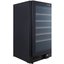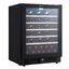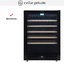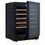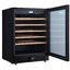 Стеклянная дверь — дополнительный изящный штрих к общему дизайну модели. Специальное покрытие защищает вино от влияния ультрафиолетовых лучей, которые проникают, если шкаф находится в солнечной комнате. Цвет корпуса — черный. Дверь можно перевесить на другую сторону, поэтому вариантов размещения его в доме становится больше.