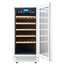 Современные винные шкафы всех типов, в том числе компрессорные, темоэлектрические и абсорбционные, оснащаются электронной системой управления — кнопочной или сенсорной. Панель управления, с помощью которой производится регулировка параметров работы, может размещаться внутри винного шкафа за дверцей или снаружи в верхней части корпуса. Второй вариант более удобен, поскольку для изменения параметров не нужно открывать дверцу. Кроме того, такое расположение панели управления позволяет поддерживать более стабильную температуру в камере. Однако для больших винных шкафов в классическом стиле из ценных пород дерева предпочтительнее скрытая панель управления, которая не портит их внешний вид.