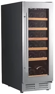Шкаф Climadiff CLE18 вмещает до 18 бутылок. Они хранятся в единой температурной зоне — в диапазоне 5-22 градусов. Вы можете установить холодильник отдельно или встроить в нишу -благодаря небольшим размерам он вписывается в любой кухонный интерьер.
