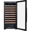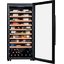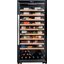 Стеклянная дверь — дополнительный изящный штрих к общему дизайну модели. Специальное покрытие защищает вино от влияния ультрафиолетовых лучей, которые проникают, если шкаф находится в солнечной комнате. Цвет корпуса — черный.