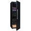 Современные винные шкафы всех типов, в том числе компрессорные, темоэлектрические и абсорбционные, оснащаются электронной системой управления — кнопочной или сенсорной. Панель управления, с помощью которой производится регулировка параметров работы, может размещаться внутри винного шкафа за дверцей или снаружи в верхней части корпуса. Второй вариант более удобен, поскольку для изменения параметров не нужно открывать дверцу. Кроме того, такое расположение панели управления позволяет поддерживать более стабильную температуру в камере. Однако для больших винных шкафов в классическом стиле из ценных пород дерева предпочтительнее скрытая панель управления, которая не портит их внешний вид.