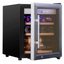 Дверца у большинства винных шкафов изготавливается из многослойного тонированного стекла. Такой материал, с одной стороны, позволяет оценивать коллекцию вин визуально, не открывая дверцу, в условиях стабильной температуры и влажности. С другой стороны, затемненное стекло с УФ-фильтром в виде напыления или специальной пленки надежно изолирует винные бутылки негативного воздействия ультрафиолетового излучения. Несколько слоев стекла обеспечивают при этом дополнительную защиту. Очень часто стекло в дверце заключается в рамку из дерева или металла. Натуральный или окрашенный металл или дерево не только способствуют прочности конструкции, но и превращают винный холодильник, особенно отдельно стоящий, в эффектный элемент обстановки.