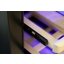 Кнопки для управления подсветкой выносятся на панель управления. Лампы синего, белого или голубого цветов могут располагаться в верхней части камеры или на боковых сторонах. Дополнительное освещение может устанавливаться в винных холодильниках с зоной для сервировки: она обеспечивает лучший обзор и доступ при подготовке вина к подаче.