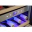 Кнопки для управления подсветкой выносятся на панель управления. Лампы синего, белого или голубого цветов могут располагаться в верхней части камеры или на боковых сторонах. Дополнительное освещение может устанавливаться в винных холодильниках с зоной для сервировки: она обеспечивает лучший обзор и доступ при подготовке вина к подаче.
