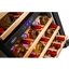 Электронная панель управления с дисплеем и кнопками позволяет регулировать температуру в каждой зоне с точностью до градуса. Кроме того, на панели управления находится кнопка включения прибора, кнопка включения внутреннего освещения и индикатор режима охлаждения. На дисплее отображается фактическая температура в обоих отсеках: по желанию можно вывести на дисплей и заданную температуру. Для уменьшения энергопотребления светодиодная подсветка выключается автоматически через 10 минут после закрытия дверцы. Для размещения бутылок служат шесть съемных полок из натурального дерева.