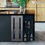 Стеклянная дверь — дополнительный изящный штрих к общему дизайну модели. Специальное покрытие защищает вино от влияния ультрафиолетовых лучей, которые проникают, если шкаф находится в солнечной комнате. Хранение становится еще безопаснее и герметичнее благодаря нескольким слоям стекол. Цвет корпуса — черный. Дверь можно перевесить на другую сторону, поэтому вариантов размещения его в доме становится больше.