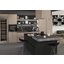 Встраиваемые холодильники для вина оснащаются специальной системой вентиляции: охлаждающая система у них находится в нижней части корпуса спереди. На такие устройства не навешивается мебельный фасад: дверца с затемненным стеклом остается на виду и открывается на достаточно широкий угол для свободного выдвижения деревянных полок.
