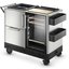 В данном модели широкий набор аксессуаров для сервировки: специальный столик, на котором можно выставить уже наполненные бокалы; разделочная доска, чтобы подготовить ингредиенты для коктейлей или закуски; удобные боксы для уже открытых бутылок; держатель для полотенца. Все это оправдывает название «мобильный бар», так как у вас под рукой все необходимое — как за барной стойкой.