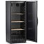 Глухая дверь без стекла надежно защищает вино от влияния ультрафиолетовых лучей, которые проникают, если шкаф находится в солнечной комнате. Это гарантирует также герметичное хранение. Цвет корпуса — черный. Дверь можно перевесить на другую сторону, поэтому вариантов размещения его в доме становится больше.