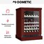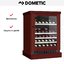 Винный холодильник Dometic C50G Wooden Mahogany имеет одну температурную зону, в которой можно разместить бутылки и единовременно выставить только одну комбинацию настроек. Он устанавливается отдельно, что удобно, если у вас есть специальное помещение — кладовая, погреб и т.д. Количество бутылок, которое можно разместить с учетом полной комплектации и из расчета объема бутылки 0,75 л, — 50 шт.