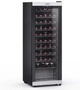 Электронное управление помогает быстро разобраться в том, как функционирует эта модель, и легко настроить все необходимые параметры. На дисплее отображаются данные, которые собирают датчики в камере. Лампочки, расположенные внутри, хорошо подсвечивают бутылки. Всего полок, на которых можно разместить коллекцию, в шкафу 10 шт.