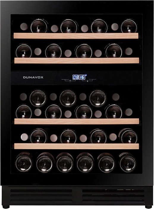 Винный холодильник Dunavox DAUF-45.125DMB.TO имеет две температурные зоны, в которых одновременно можно хранить разные сорта алкоголя и выставлять разные сочетания настроек. Он встраивается в нишу, что удобно, если у вас ограничен метраж помещения. Благодаря компактным размерам данная модель — отличный выбор для офиса, гостиничного номера. Количество бутылок, которое можно разместить с учетом полной комплектации и из расчета объема бутылки 0,75 л, — 45 шт.