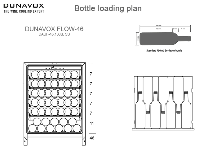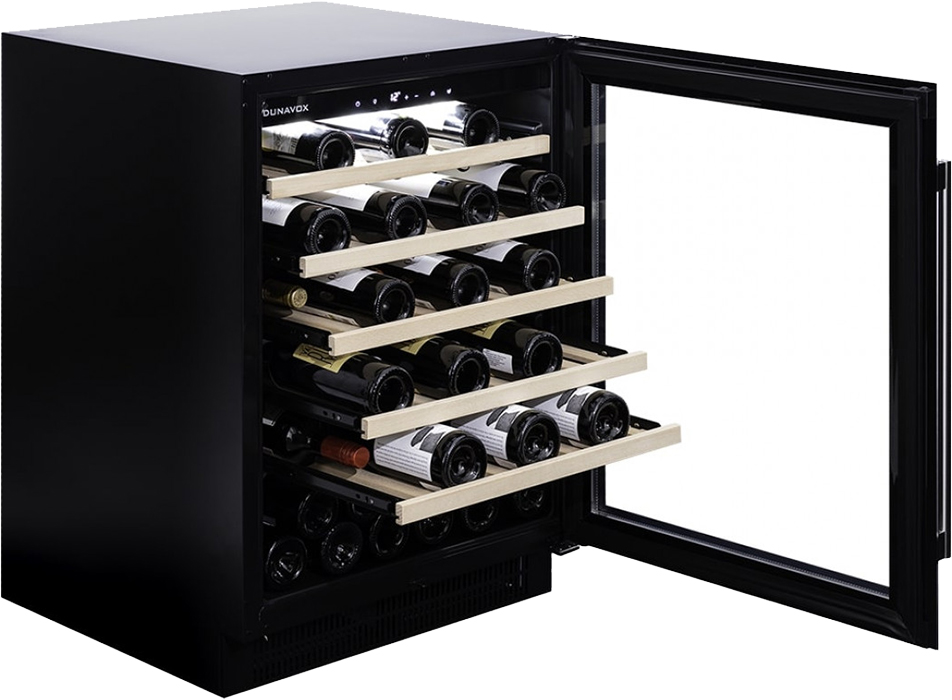 Винный холодильник Dunavox DAUF-46.138MB имеет одну температурную зону, в которой можно разместить бутылки и единовременно выставить только одну комбинацию настроек. Он встраивается в нишу, что удобно, если у вас ограничен метраж помещения. Благодаря компактным размерам данная модель — отличный выбор для офиса, гостиничного номера. Количество бутылок, которое можно разместить с учетом полной комплектации и из расчета объема бутылки 0,75 л, — 46 шт.
