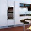 Встраиваемые холодильники для вина оснащаются специальной системой вентиляции: охлаждающая система у них находится в нижней части корпуса спереди. На такие устройства не навешивается мебельный фасад: дверца с затемненным стеклом остается на виду и открывается на достаточно широкий угол для свободного выдвижения деревянных полок.