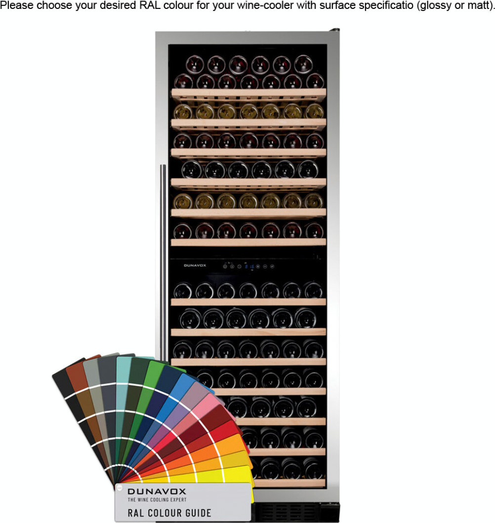 Всегда популярными остаются и универсальные цвета, особенно черный: белые корпуса винных шкафов можно найти в каталогах значительно реже. Черные корпуса могут изготавливаться как из металла, так и из дерева. Достаточно велик ассортимент винных холодильников в корпусах серого цвета и оттенка нержавеющей стали, которые сочетаются с любыми другими тонами и уместны а интерьерах как классического, так и современного стиля. Интересны изделия в корпусах «металлических» оттенков: серебряного, золотого, бронзового. Эффектно смотрятся модели, где детали золотого и бронзового цветов сочетаются с теплыми тонами натурального дерева.
