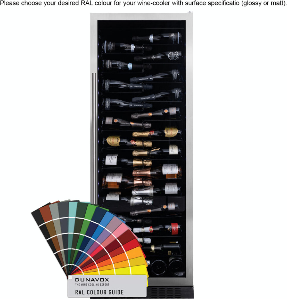 Всегда популярными остаются и универсальные цвета, особенно черный: белые корпуса винных шкафов можно найти в каталогах значительно реже. Черные корпуса могут изготавливаться как из металла, так и из дерева. Достаточно велик ассортимент винных холодильников в корпусах серого цвета и оттенка нержавеющей стали, которые сочетаются с любыми другими тонами и уместны а интерьерах как классического, так и современного стиля. Интересны изделия в корпусах «металлических» оттенков: серебряного, золотого, бронзового. Эффектно смотрятся модели, где детали золотого и бронзового цветов сочетаются с теплыми тонами натурального дерева.