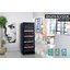 Производители предлагают винные шкафы, оснащенные одной, двумя, тремя и четырьмя камерами, которые могут располагаться как друг под другом, так бок и бок. Самые популярные — однокамерные модели, ассортимент которых особенно широк, но втором месте — двухкамерные. Над заметить, что количество камер не зависит напрямую от габаритов изделия: например, однокамерные модели увеличенных габаритов — далеко не редкость. Их высота может варьироваться в пределах от 14 см до 219 см, а ширина — от 13 см до 150 см.