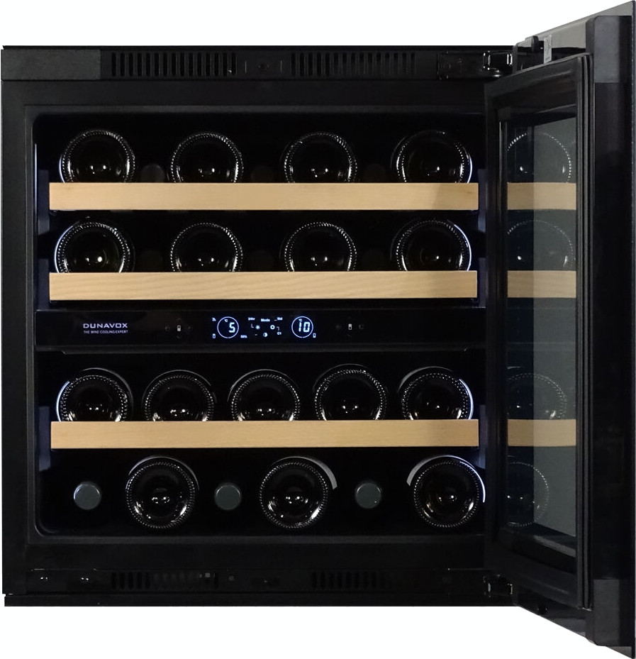 Винный холодильник Dunavox DVH-25.65DC.TO имеет две температурные зоны, в которых одновременно можно хранить разные сорта алкоголя и выставлять разные сочетания настроек. Он встраивается в нишу, что удобно, если у вас ограничен метраж помещения. Благодаря компактным размерам данная модель — отличный выбор для офиса, гостиничного номера. Количество бутылок, которое можно разместить с учетом полной комплектации и из расчета объема бутылки 0,75 л, — 25 шт.