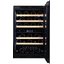 Современные винные шкафы всех типов, в том числе компрессорные, темоэлектрические и абсорбционные, оснащаются электронной системой управления — кнопочной или сенсорной. Панель управления, с помощью которой производится регулировка параметров работы, может размещаться внутри винного шкафа за дверцей или снаружи в верхней части корпуса. Второй вариант более удобен, поскольку для изменения параметров не нужно открывать дверцу. Кроме того, такое расположение панели управления позволяет поддерживать более стабильную температуру в камере. Однако для больших винных шкафов в классическом стиле из ценных пород дерева предпочтительнее скрытая панель управления, которая не портит их внешний вид.