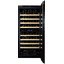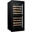 Стеклянная дверь — дополнительный изящный штрих к общему дизайну модели. Специальное покрытие защищает вино от влияния ультрафиолетовых лучей, которые проникают, если шкаф находится в солнечной комнате. Хранение становится еще безопаснее и герметичнее благодаря нескольким слоям стекол. Цвет корпуса — черный матовый. Дверь можно перевесить на другую сторону, поэтому вариантов размещения его в доме становится больше. Доводчик делает открытие и закрытие плавным.
