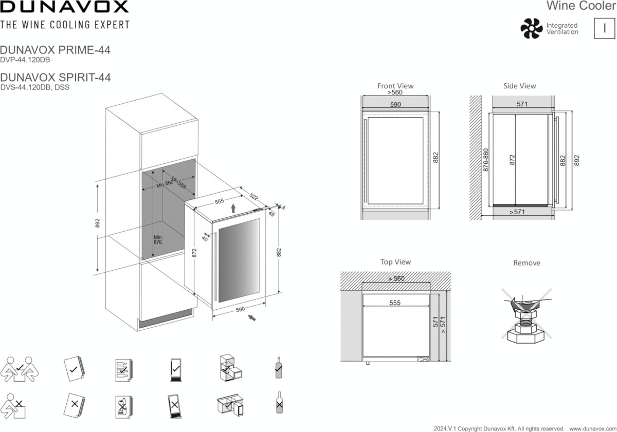 Некоторые отдельно стоящие винные шкафы, а также модели, встраиваемые в мебельную колонну, шкаф или другое закрытое пространство, оснащаются системой забора воздуха и вентиляционной решеткой, расположенными спереди в нижней части корпуса. Зазоры между корпусом шкафа и стенками мебели необходимы и в этом случае.