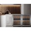 Встраиваемые холодильники для вина оснащаются специальной системой вентиляции: охлаждающая система у них находится в нижней части корпуса спереди. На такие устройства не навешивается мебельный фасад: дверца с затемненным стеклом остается на виду и открывается на достаточно широкий угол для свободного выдвижения деревянных полок.