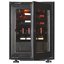 Современные винные шкафы всех типов, в том числе компрессорные, темоэлектрические и абсорбционные, оснащаются электронной системой управления — кнопочной или сенсорной. Панель управления, с помощью которой производится регулировка параметров работы, может размещаться внутри винного шкафа за дверцей или снаружи в верхней части корпуса. Второй вариант более удобен, поскольку для изменения параметров не нужно открывать дверцу. Кроме того, такое расположение панели управления позволяет поддерживать более стабильную температуру в камере. Однако для больших винных шкафов в классическом стиле из ценных пород дерева предпочтительнее скрытая панель управления, которая не портит их внешний вид.