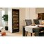 Ширина винного шкафа, как и другие их габариты, обязательно учитывается при выборе модели для домашнего или профессионального использования. Встраиваемые и отдельно стоящие модели выпускаются в самом широком ассортименте, так что разброс значений максимально велик. Неизменным спросом пользуются винные шкафы стандартной ширины — от 40 до 80 см, в современном и классическом стиле. Для встраиваемых шкафов наиболее удобной является ширина 60 см, позволяющая устанавливать их в кухонную тумбу или колонну. Вместимость их может быть самой различной и зависит в большей степени от высоты прибора. Маленькие винные шкафы с размещением на столешнице или даже с креплением к стене, рассчитанные на хранение от одной до десяти бутылок, могут иметь минимальную ширину от 13 см. На полках у них обычно помещается не более 5 бутылок, и используются они для охлаждения вина перед подачей. Большие винные шкафы с несколькими камерами и температурными зонами для длительного хранения и созревания разных сортов вина могут иметь ширину до 180 см, а максимальное значение этого параметра может составить 300 см. Как правило, это отдельно стоящие модели в деревянном корпусе с камерами side-by-side.