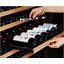 Полки в винных шкафах позволяют размещать бутылки для хранения в горизонтальном положении. Это необходимо, чтобы пробка постоянно смачивалась жидкостью и не пересыхала. Плотно закрытая пробка гарантирует, что внутрь бутылки не проникнет наружный воздух. Кислород, содержащийся в воздухе, может стать причиной ухудшения вкуса вина и даже его скисания. Кроме того, горизонтальное положение позволяет лучше оценить количество осадка. Материал изготовления полок выбирается, исходя из требований, предъявляемых к содержанию коллекции вин. Одним из основных требования является отсутствие или максимальное сокращение вибрации и хорошая фиксация бутылок на месте хранения. Даже если полка выдвигается, бутылки должны оставаться на своем месте. Второе требование исключает применение стеклянных полок, как в обычном холодильнике: на них почти невозможно зафиксировать бутылки.