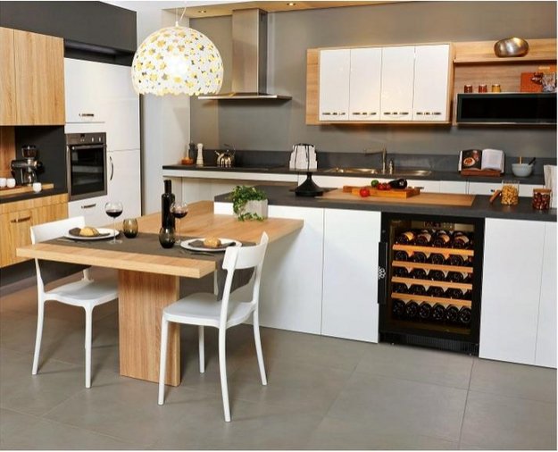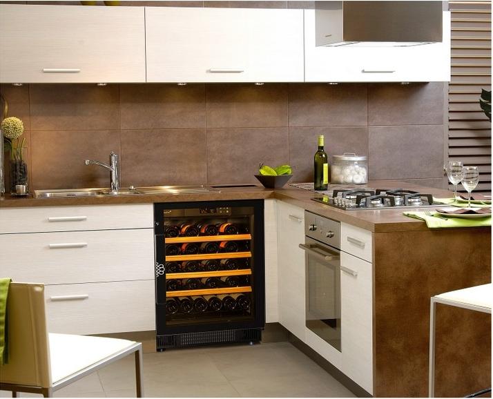 Частичное встраивание отдельно стоящих винных шкафов в нишу — полезная опция, позволяющая сэкономить место в помещении и выбрать лучшее расположение прибора. Устанавливать в нишу или под столешницу рекомендуется только компрессорные модели — другие, например, термоэлектрические, не смогут достаточно вентилироваться при таком расположении. Если винный холодильник оснащен воздухозаборными решетками и радиатором охлаждения в нижней части, он может быть встроен без зазоров. Для удаления нагретого воздуха требуется свободный проход по всей длине холодильника от цоколя до верхней части.
