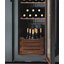 Встраиваемые холодильники для вина оснащаются специальной системой вентиляции: охлаждающая система у них находится в нижней части корпуса спереди. На такие устройства не навешивается мебельный фасад: дверца с затемненным стеклом остается на виду и открывается на достаточно широкий угол для свободного выдвижения деревянных полок.