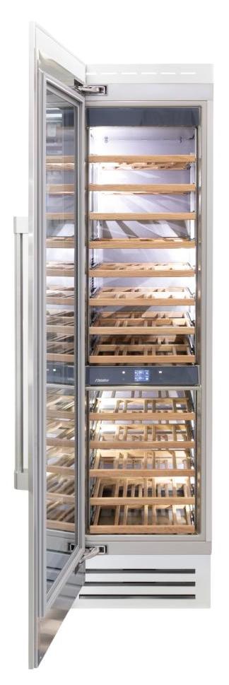 Винный холодильник Fhiaba RS600FW3 имеет две температурные зоны, в которых одновременно можно хранить разные сорта алкоголя и выставлять разные сочетания настроек. Он встраивается в нишу, что удобно, если у вас ограничен метраж помещения. Количество бутылок, которое можно разместить с учетом полной комплектации и из расчета объема бутылки 0,75 л, — 78 шт.