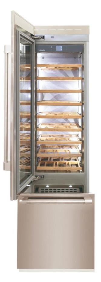Винный холодильник Fhiaba RS600TWT3 имеет две температурные зоны, в которых одновременно можно хранить разные сорта алкоголя и выставлять разные сочетания настроек. Он встраивается в нишу, что удобно, если у вас ограничен метраж помещения. Количество бутылок, которое можно разместить с учетом полной комплектации и из расчета объема бутылки 0,75 л, — 54 шт.