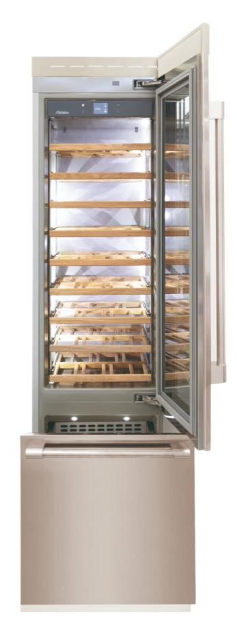 Винный холодильник Fhiaba RS600TWT6 имеет две температурные зоны, в которых одновременно можно хранить разные сорта алкоголя и выставлять разные сочетания настроек. Он встраивается в нишу, что удобно, если у вас ограничен метраж помещения. Количество бутылок, которое можно разместить с учетом полной комплектации и из расчета объема бутылки 0,75 л, — 54 шт.