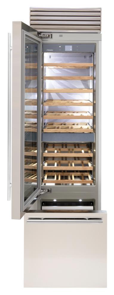 Винный холодильник Fhiaba XS601TWT3 имеет несколько температурных зон, в которых одновременно можно хранить разные сорта алкоголя и выставлять разные сочетания настроек. Он встраивается в нишу, что удобно, если у вас ограничен метраж помещения. Количество бутылок, которое можно разместить с учетом полной комплектации и из расчета объема бутылки 0,75 л, — 54 шт.