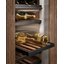 Управление осуществляется с помощью сенсорной панели и информативного дисплея, а наличие встроенного Wi-Fi модуля и поддержки Home Connect позволяет дистанционно контролировать и настраивать параметры хранения, а также получать уведомления о состоянии устройства. Текстовое меню интуитивно понятно, что делает эксплуатацию легкой даже для неопытных пользователей. Внутри расположено 12 полок, из которых 9 — выдвижные на телескопических направляющих, что обеспечивает легкий доступ к любой бутылке. Полки выполнены из бука с металлической окантовкой, что обеспечивает долговечность и подчеркивает премиальность изделия. Максимально допустимый вес фасада составляет 73 кг, что позволяет использовать массивные декоративные панели без риска для механизма.