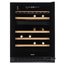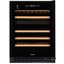Стеклянная дверь — дополнительный изящный штрих к общему дизайну модели. Специальное покрытие защищает вино от влияния ультрафиолетовых лучей, которые проникают, если шкаф находится в солнечной комнате. Цвет корпуса — черный.
