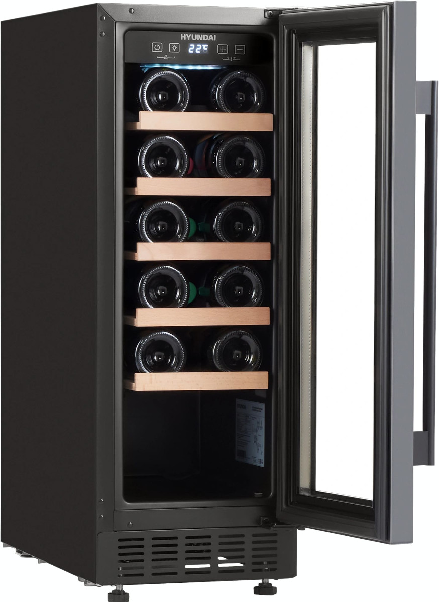 Винный холодильник Hyundai HBWC 0831 SU имеет одну температурную зону, в которой можно разместить бутылки и единовременно выставить только одну комбинацию настроек. Он встраивается в нишу, что удобно, если у вас ограничен метраж помещения. Благодаря компактным размерам данная модель — отличный выбор для офиса, гостиничного номера. Количество бутылок, которое можно разместить с учетом полной комплектации и из расчета объема бутылки 0,75 л, — 20 шт.