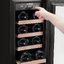 Большинство современных винных шкафов имеет электронное управление, они могут оснащаться обычными цифровыми дисплеями, на которых будет отображаться минимум информации — о включении, температуре в камере и возникших неисправностях. Однако в большинстве моделей используются текстовые сенсорные дисплеи из нескольких сегментов. С помощью кнопок сенсорного меню на этих дисплеях можно отображать и регулировать температуру в каждой зоне отдельно с точностью до градуса, выбирать уровень влажности, задавать дополнительные опции — отключение сигнализации, включение вентиляции и внутреннего освещения, активацию защиты от детей, тип отображения температуры ºF/ºC. Здесь же будут появляться коды ошибок, выданные системой обнаружения неисправностей.
