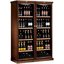 Реже выпускаются винные шкафы со сплошными дверцами из металла или дерева. «Глухая» дверь гарантирует гораздо лучшую сохранность коллекции, поскольку попадание солнечных лучей совершенно исключается. Кроме того, сплошная дверь способствует созданию единого стиля интерьера. Недостатком ее является та же непрозрачность: чтобы продемонстрировать коллекцию или отыскать ту или иную бутылку, дверцу приходится открыть.