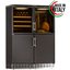 Электронное управление помогает быстро разобраться в том, как функционирует эта модель, и легко настроить все необходимые параметры. Лампочки, расположенные внутри, хорошо подсвечивают бутылки. Всего полок, на которых можно разместить коллекцию, в шкафу 8 шт.