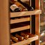 Ширина винного шкафа, как и другие их габариты, обязательно учитывается при выборе модели для домашнего или профессионального использования. Встраиваемые и отдельно стоящие модели выпускаются в самом широком ассортименте, так что разброс значений максимально велик. Неизменным спросом пользуются винные шкафы стандартной ширины — от 40 до 80 см, в современном и классическом стиле. Для встраиваемых шкафов наиболее удобной является ширина 60 см, позволяющая устанавливать их в кухонную тумбу или колонну. Вместимость их может быть самой различной и зависит в большей степени от высоты прибора. Маленькие винные шкафы с размещением на столешнице или даже с креплением к стене, рассчитанные на хранение от одной до десяти бутылок, могут иметь минимальную ширину от 13 см. На полках у них обычно помещается не более 5 бутылок, и используются они для охлаждения вина перед подачей. Большие винные шкафы с несколькими камерами и температурными зонами для длительного хранения и созревания разных сортов вина могут иметь ширину до 180 см, а максимальное значение этого параметра может составить 300 см. Как правило, это отдельно стоящие модели в деревянном корпусе с камерами side-by-side.