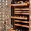 Самым подходящим материалом для изготовления полок, по мнению специалистов, является натуральное не лакированное дерево — бук, дуб, сосна, лиственница. У него множество преимуществ: прежде всего оно способно гасить мелкие вибрации. Дерево хорошо поддается обработке: решетчатые полки, например, позволяют хорошо зафиксировать бутылки, так что они не будут качаться при выдвижении. Кроме того, дерево почти не впитывает запахи и при понижении температуры на нем не образуется конденсат. В некоторых моделях применяются комбинированные полки с металлическим каркасом и деревянными держателями бутылок, а также полностью металлические. Недостаток их — образование конденсата, а значит, изменение уровня влажности, которое может привести также к порче этикеток. Самый бюджетный и наименее эффектный вариант — полки из пластика, имеющие те же недостатки, что и металлические.