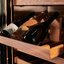 Полки в винных шкафах позволяют размещать бутылки для хранения в горизонтальном положении. Это необходимо, чтобы пробка постоянно смачивалась жидкостью и не пересыхала. Плотно закрытая пробка гарантирует, что внутрь бутылки не проникнет наружный воздух. Кислород, содержащийся в воздухе, может стать причиной ухудшения вкуса вина и даже его скисания. Кроме того, горизонтальное положение позволяет лучше оценить количество осадка. Материал изготовления полок выбирается, исходя из требований, предъявляемых к содержанию коллекции вин. Одним из основных требования является отсутствие или максимальное сокращение вибрации и хорошая фиксация бутылок на месте хранения. Даже если полка выдвигается, бутылки должны оставаться на своем месте. Второе требование исключает применение стеклянных полок, как в обычном холодильнике: на них почти невозможно зафиксировать бутылки.